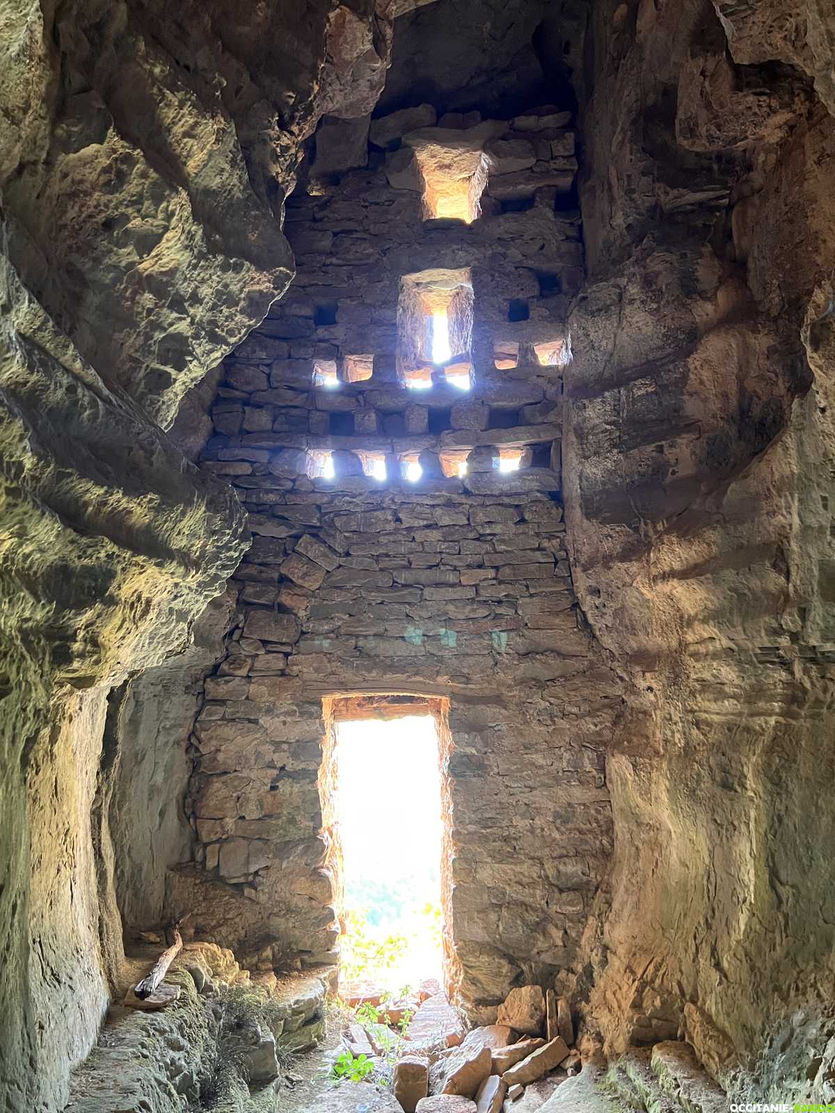 Le clou de la randonnée reste le passage par le chaos de Roquesaltes, l’un des plus beaux sites naturels d’Occitanie. Ces géants de pierre aux formes étonnantes — arche, cloche et rochers ruiniformes — donnent l’impression d’un décor fantastique sculpté par le temps.