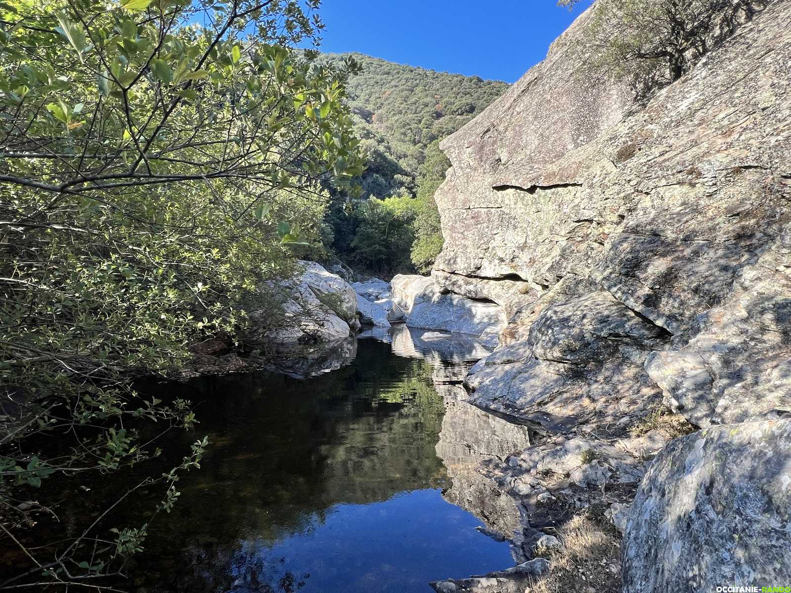 Nous arrivons au ruisseau qui hélas est quasiment à sec. C’est triste de voir ce filet d'eau s’écouler péniblement.