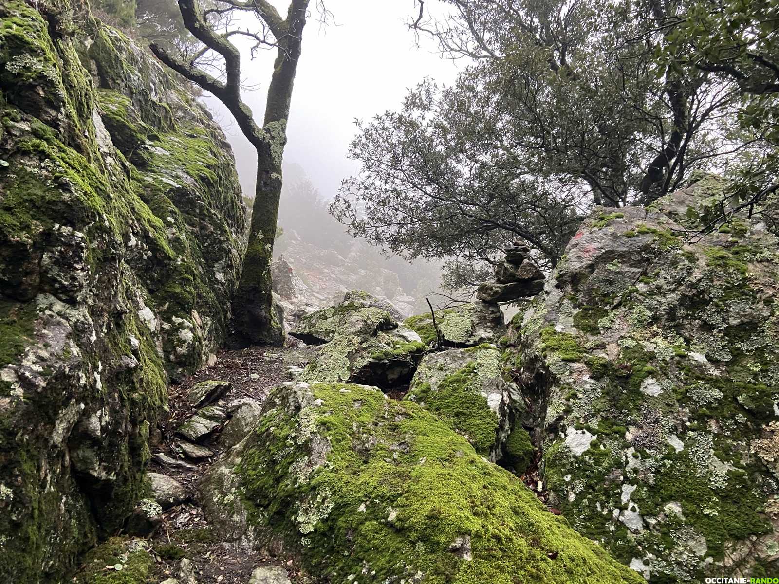 Le retour se fait sans difficulté, sans chute mais avec quelques belles glissades via le sentier du col de la Maure qui est commun avec celui du GRP Tour du Haut-Languedoc et Vignobles.