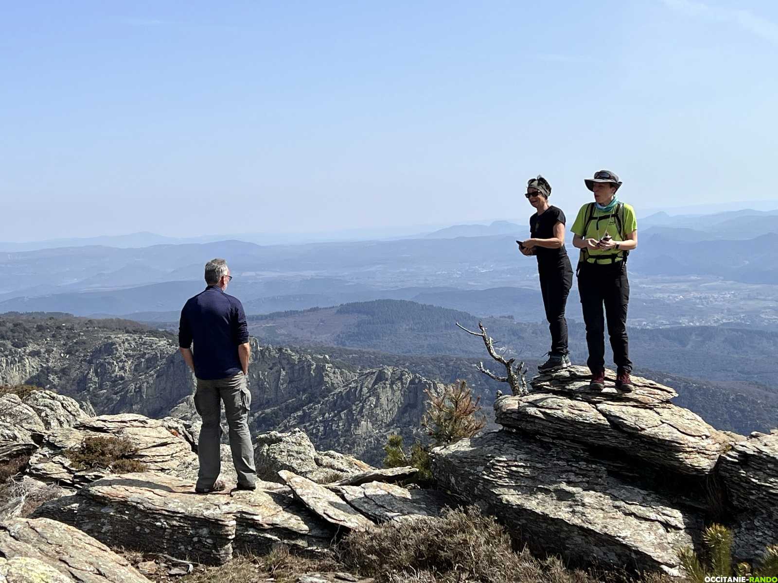 Arrivé sur le plateau, nous déjeunons profitant d'une vue plongeante sur Colombières et le massif du Bastion.