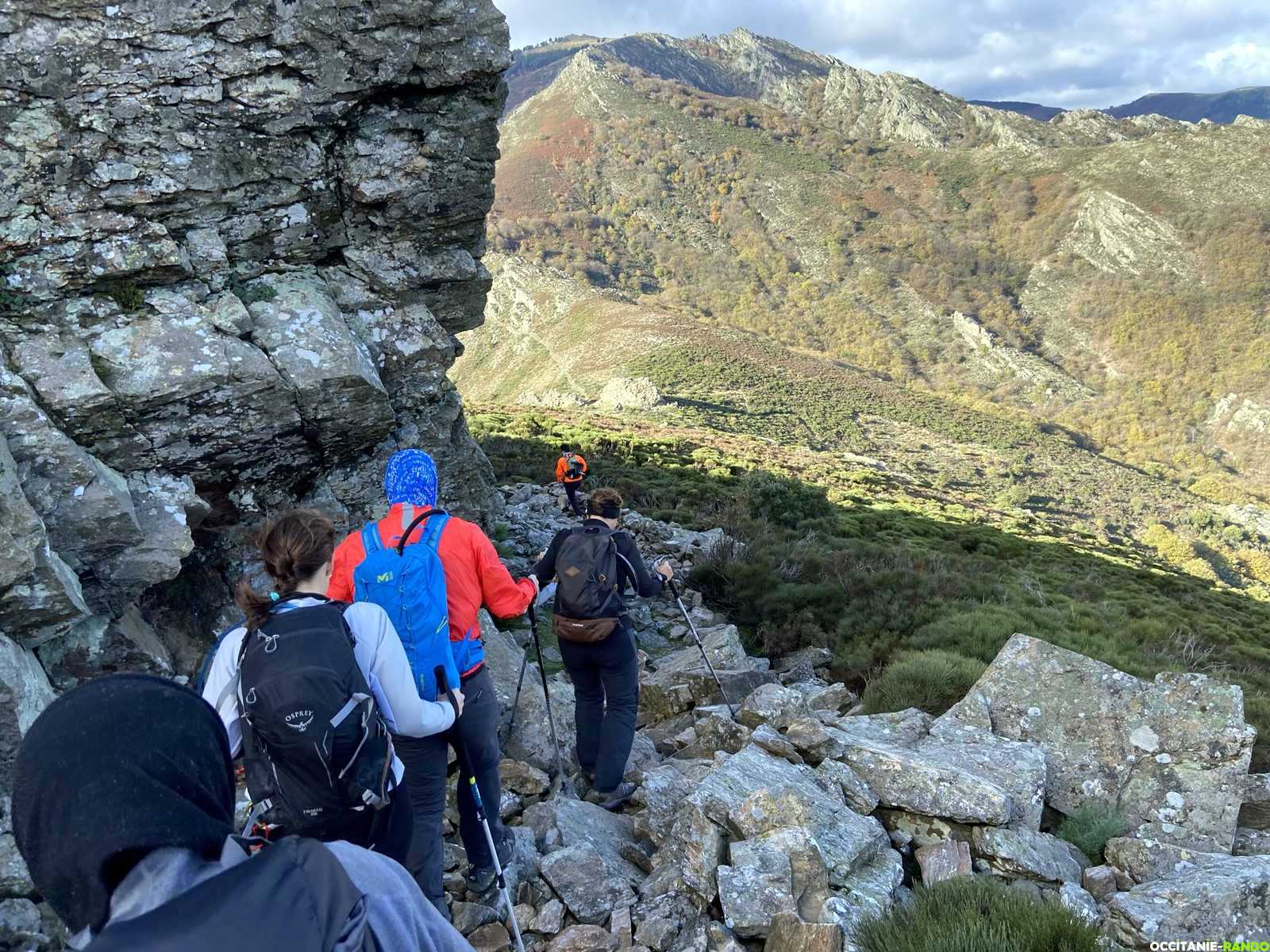 De fortes rafales de vent nous coupent le souffle et rendent l'ascension difficile. Heureusement, une pause café, brioche et chocolat nous attend à l'abri du vent et sous un beau soleil juste avant d'atteindre le portail. De là, direction Andabre puis Plaisance où nous posons les sacs à dos pour déjeuner.