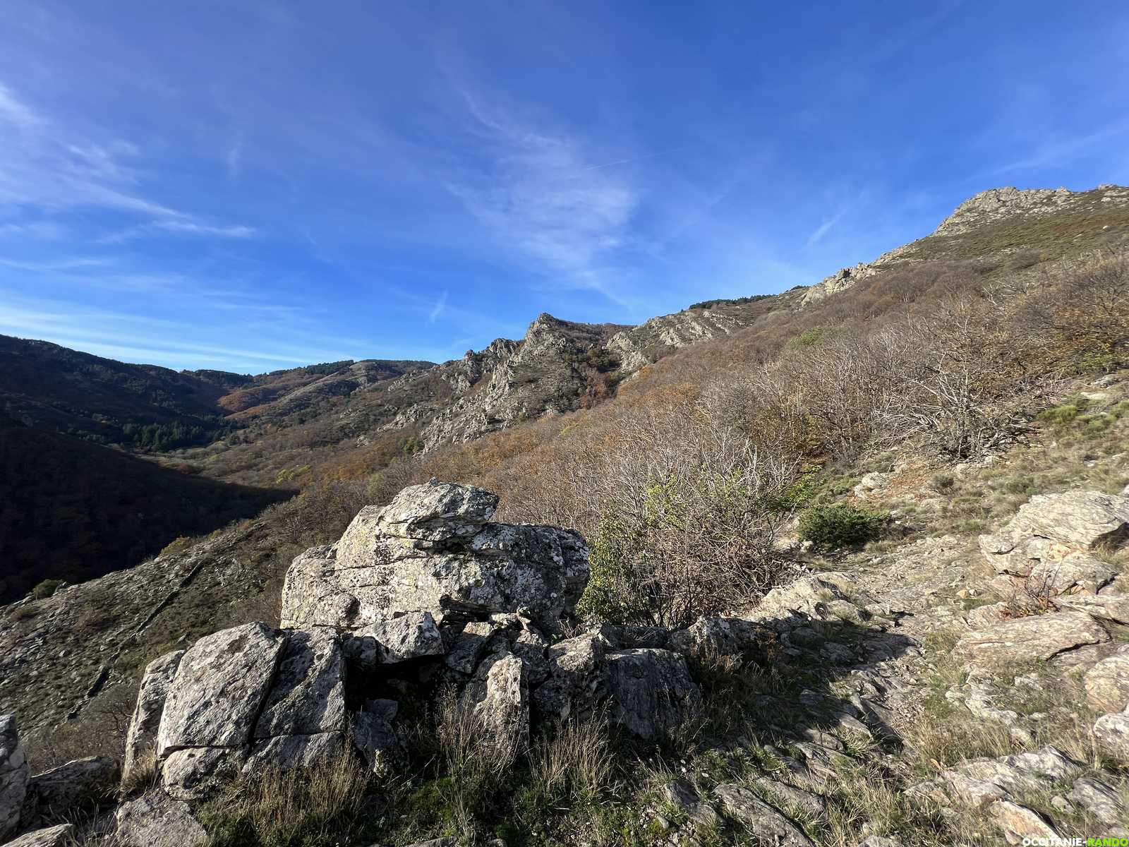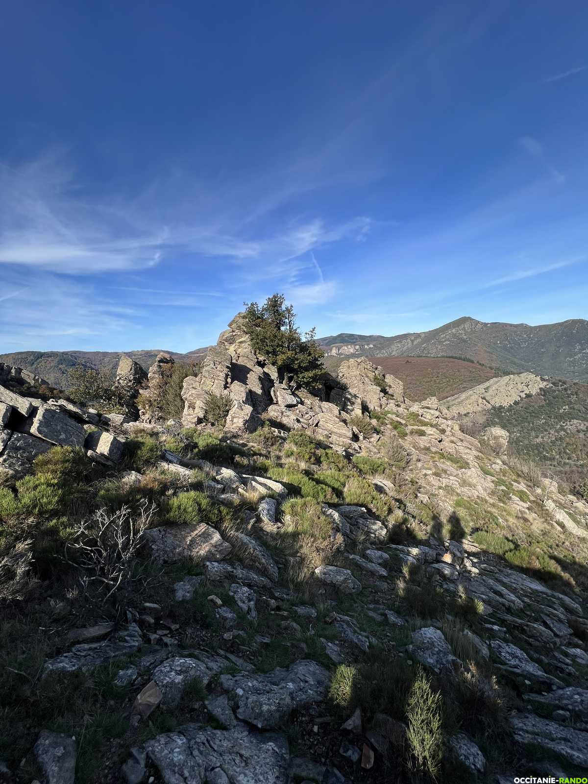 Une fois sur place, nous rejoignons le portail de Roquandouire via le GR de Pays Tours de Monts et Lacs en Haut-Languedoc.