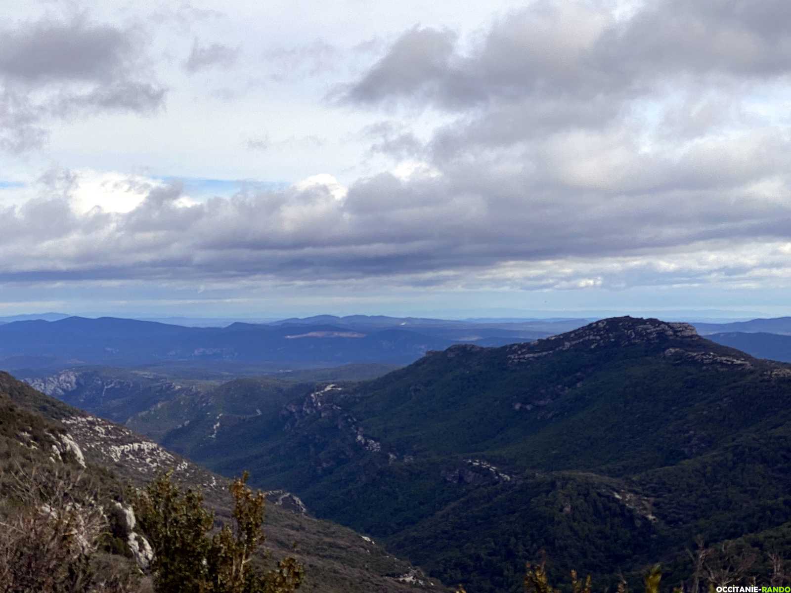 De là, nous grimpons sur le plateau qui offre un point de vue sur les Pyrénées, le pic de Vissou et de l'Hortus.