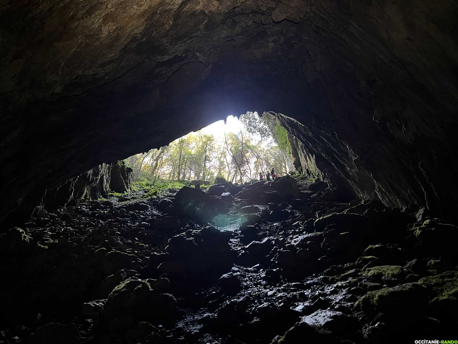 Ça s’est fait ! Nous poursuivons et arrivons enfin au col de la Baraquette où nous franchissons un portail pour retourner au pied du pic d'Anjeau du côté de la grotte d'Anjeau. Descente assez sympathique tant les paysages sont variés et le soleil bien présent. Un coin d’ombre et nous décidons de nous arrêter pour déjeuner.Une pause rapide et nous repartons déjà pour visiter la grotte d’Anjeau. Arrivés sur place, nous profitons de cette majestueuse grotte. Vraiment impressionnante par sa taille et ses multiples cavités.