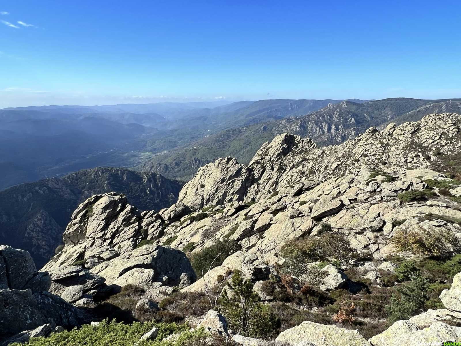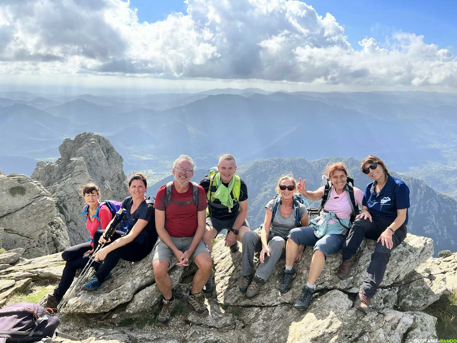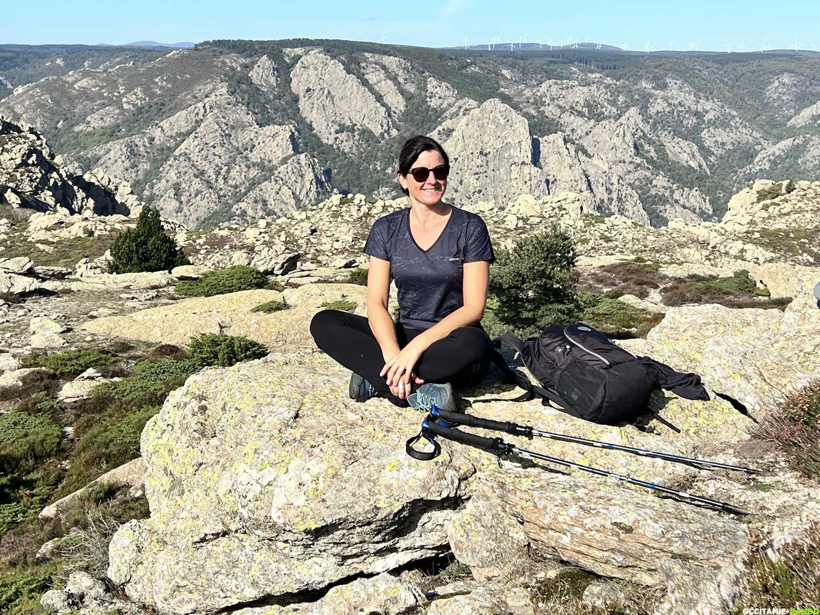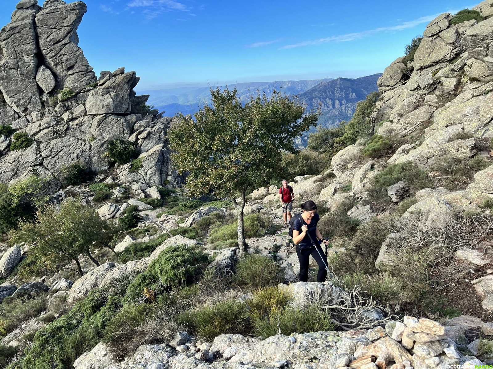 Pour digérer, nous montons au roc du Caroux pour une séance photos puis nous poursuivons notre chemin en rejoignant la piste des Aiguilles puis le chemin des Gardes au col de Bartouyre.