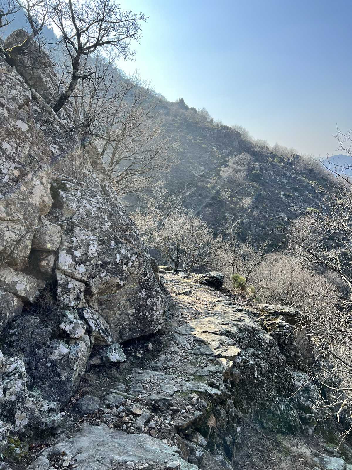 Le démarrage se fait tout en douceur par le sentier de l'Airolle un très vieux sentier qui assurait autrefois la liaison entre les habitants de Douch et d'Héric.