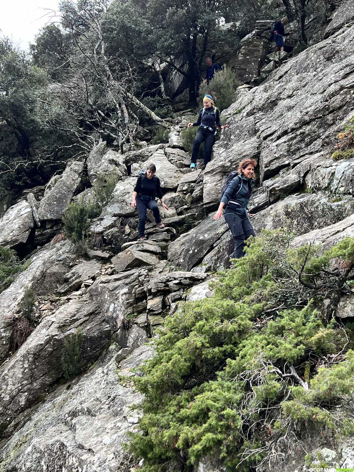 Nous escaladons un gros bloc de roche sur une 10aine de mètres grâce aux échelles métalliques scellées et arrivons au Portail des Cades.