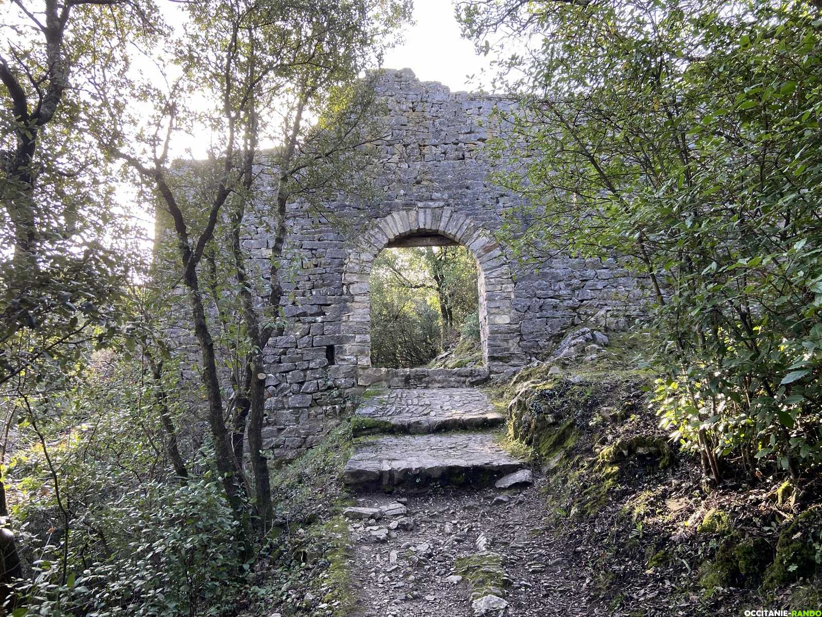 Après une brève visite du village, le chemin s'élève tranquillement pour atteindre le hameau de "Les Abbes" et nous amener aux ruines du château de Mourcairol où se trouve la chapelle Saint-Michel, juste en face de la combe de Baraban.