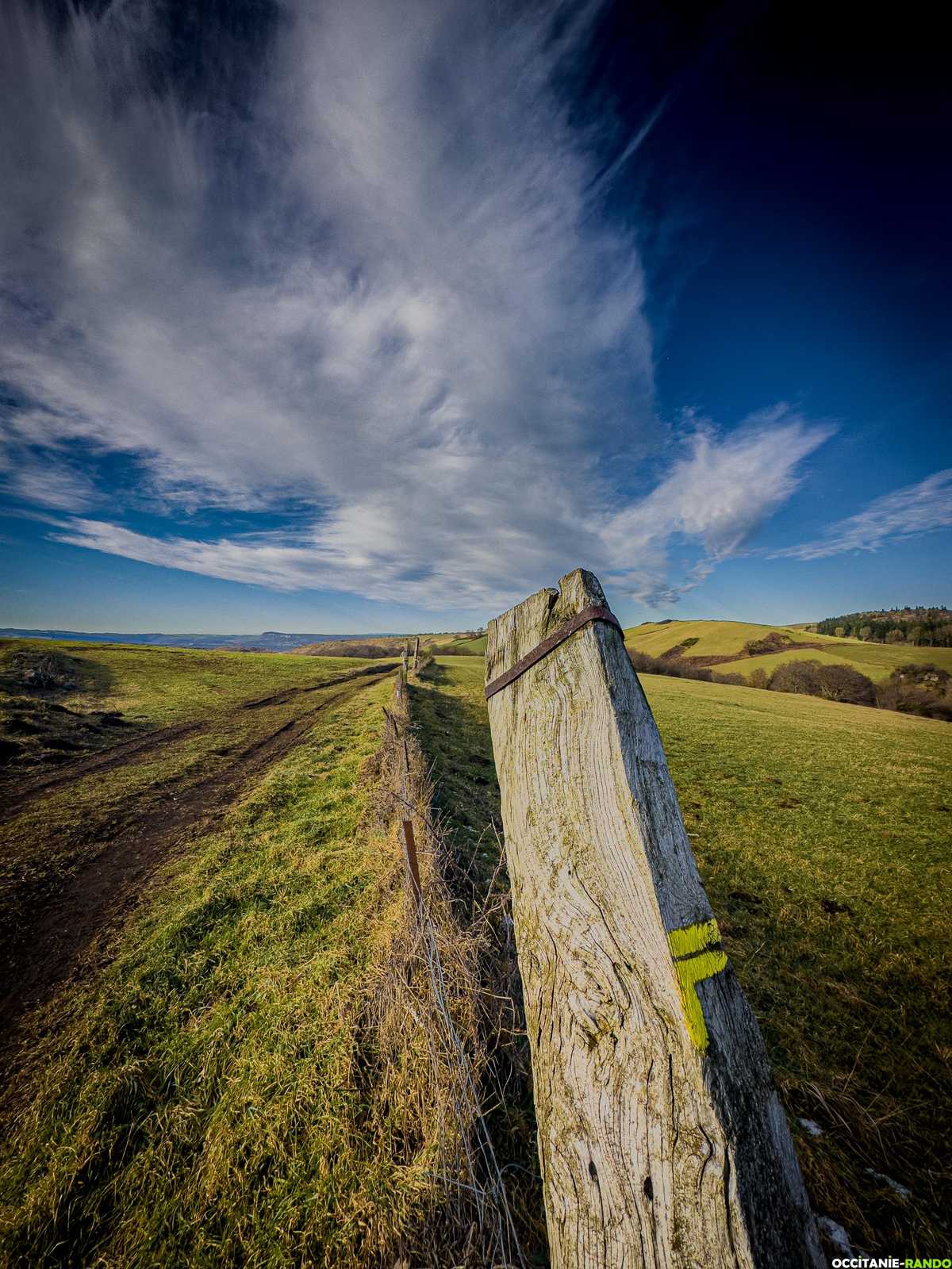 Le parcours continue à travers des paysages variés, mêlant hameaux typiques comme le Mas de Grèzes et vastes espaces dégagés.