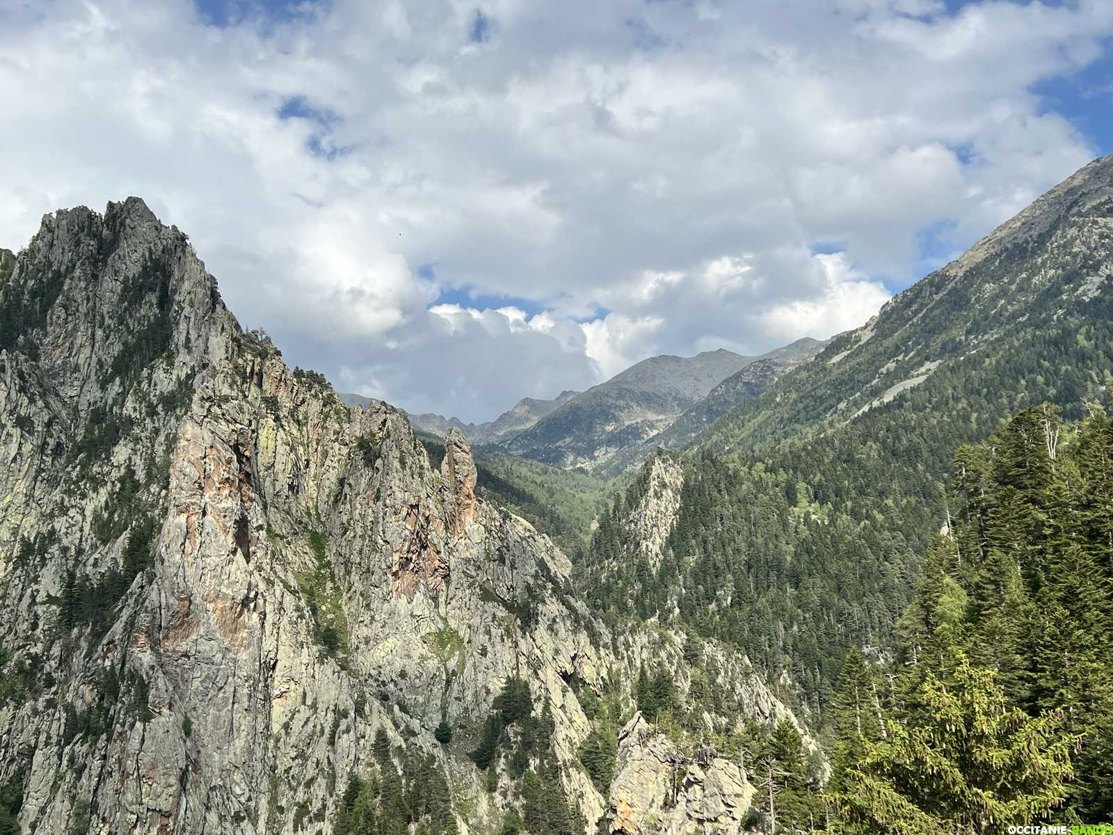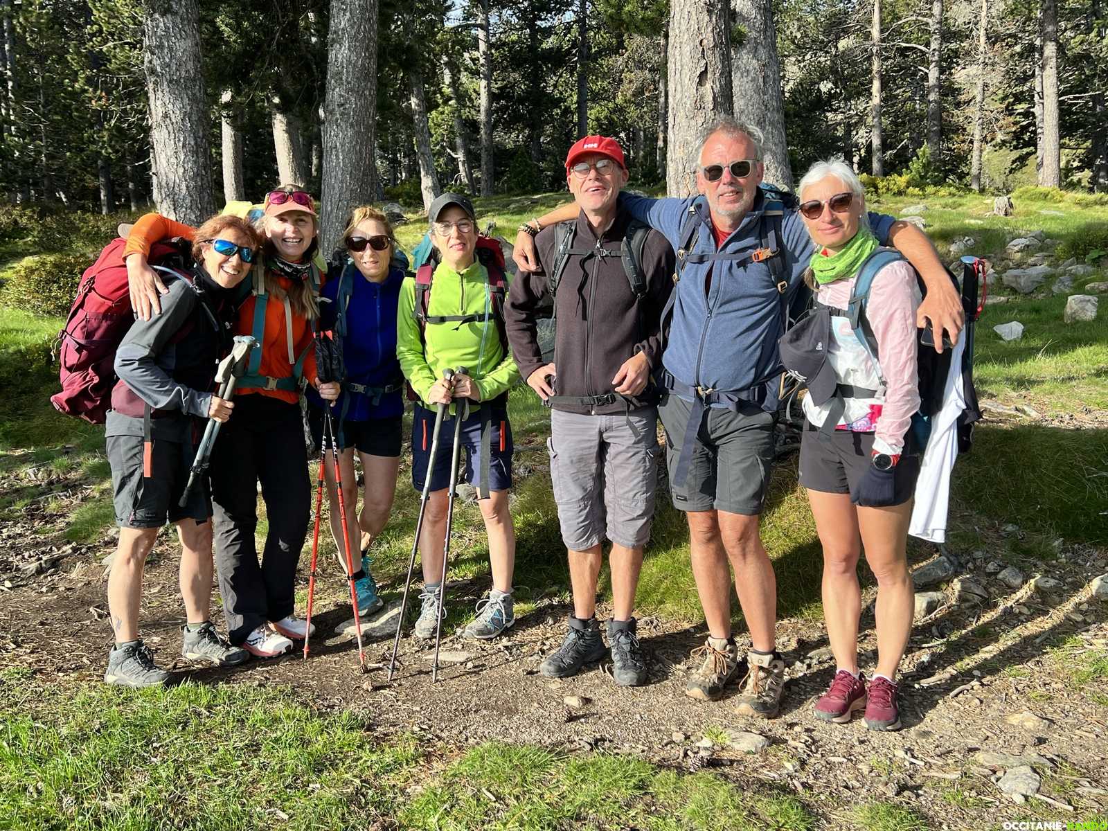 Après une très bonne soirée au refuge des Cortalets, nous démarrons la rando à 8h pour rejoindre le refuge de Batère. Au programme une petite bouclette supplémentaire pour corser un peu la journée. La boucle plonge direct sur Els Masos, longue, très longue descente en forêt avant de pique-niquer au bord d’un ruisseau. Là, après le déjeuner, il faut tout remonter sur le versant d’en face. Tout aussi long et éreintant . Les visages sont marqués et ça grimace un peu .