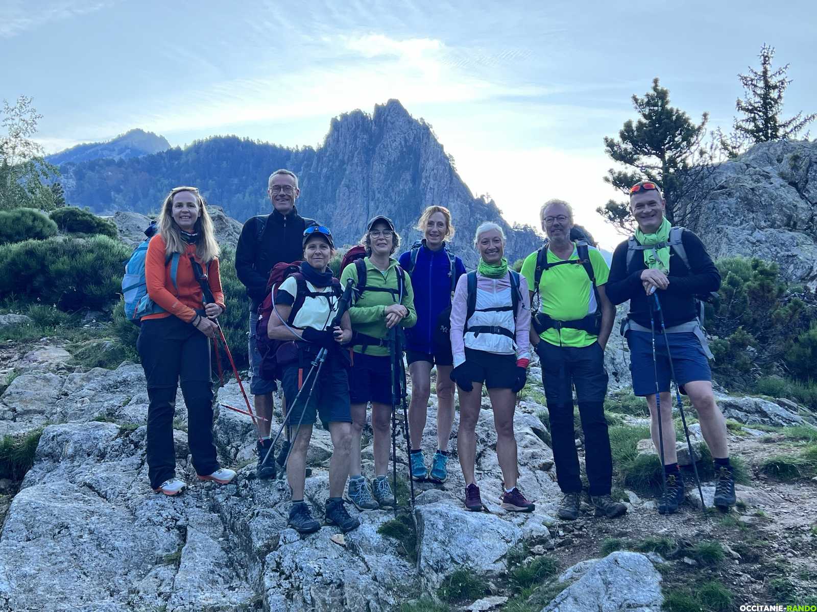 Deuxième jour avec une belle étape à l'assaut du pic du Canigou site emblématique des Pyrénées et des montagnes catalanes. Une météo exceptionnelle aujourd’hui avec un ciel bleu azur et un soleil chaleureux. Aujourd'hui, nous commençons avec 9,5km de grimpette avec en clou du spectacle l'ascension du Canigou (2 784m) par la brèche de Durier (la cheminée), impressionnant mais assez accessible. Même si la montée n’a pas été facile tout le monde a grimpé au sommet !