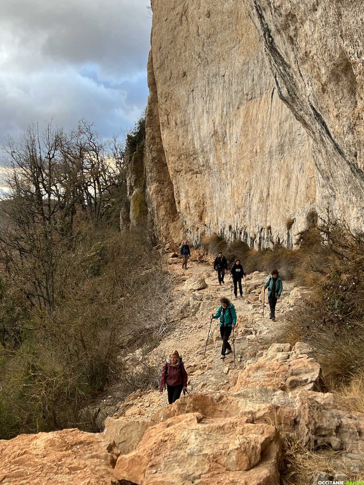 Nous poursuivons notre route sur un sentier qui serpente le long de la falaise. De nombreuses baumes sont présentes sur le parcours, nous dépassons celle du Lucarnou et déjà la météo change.