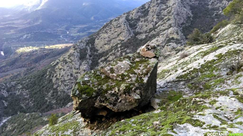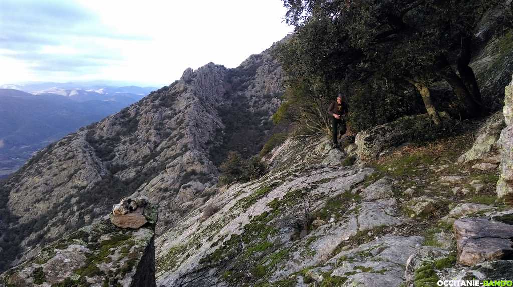 Après avoir bifurqués vers l'ouest, nous nous dirigeons vers l'imposante muraille de Roque-Rouge. Ce sentier plutôt aérien et vertigineux par endroit n'est pas à conseiller par temps humide ni aux personnes souffrant du vertige. Je n'étais moi-même pas tout à fait rassuré !