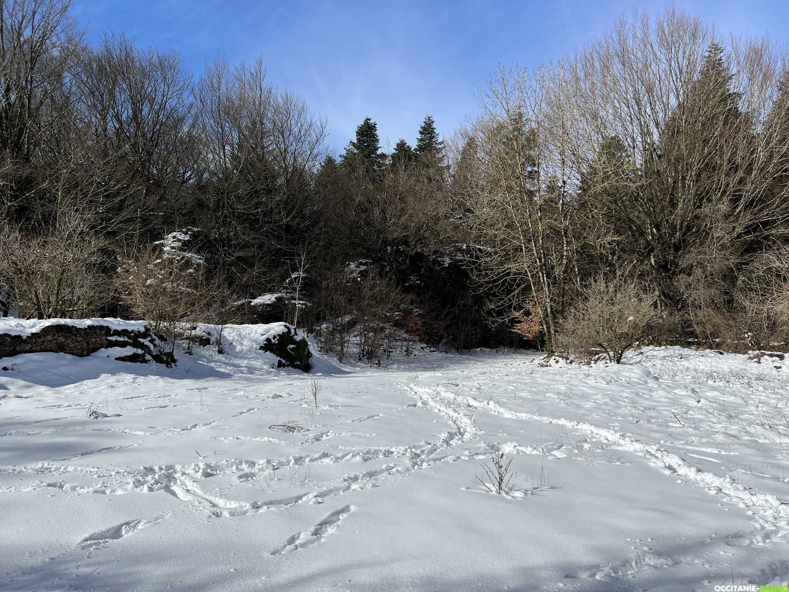 Dès les premiers kilomètres, la neige crissait sous nos pas tandis que nous progressions à travers la forêt domaniale de l’Escandorgue, où les arbres chargés de neige créaient une ambiance magique.