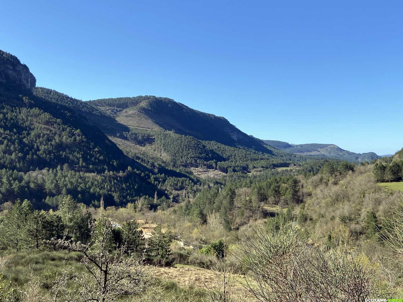 Là, ça monte encore mais c'est plus simple et nous profitons d'une magnifique vue sur la falaise de Lou Baoucas en bordure sud de la forêt de Parlatges.