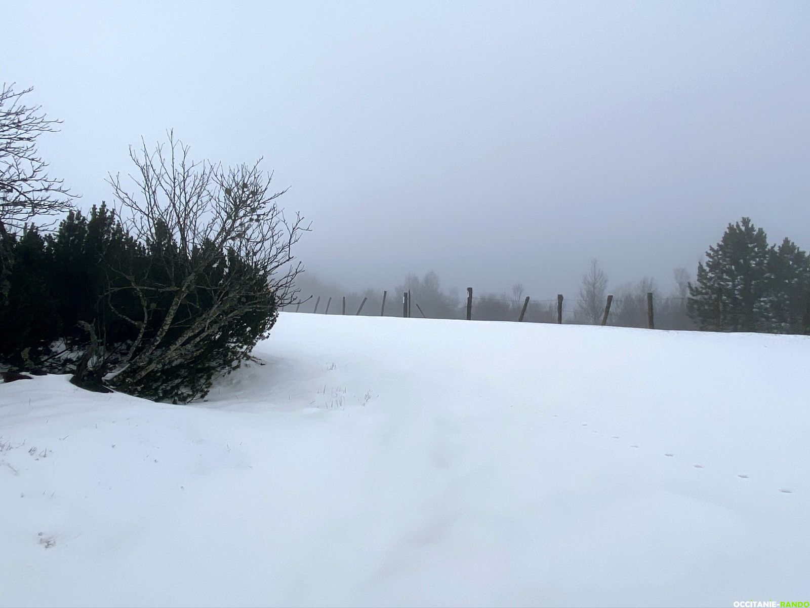 Nous ne trainons pas au mont Aigoual et poursuivons notre route les pieds bien au frais sous la neige. Heureusement, les chaussures de rando montantes font le job et nous protègent bien de la neige et de l’humidité.