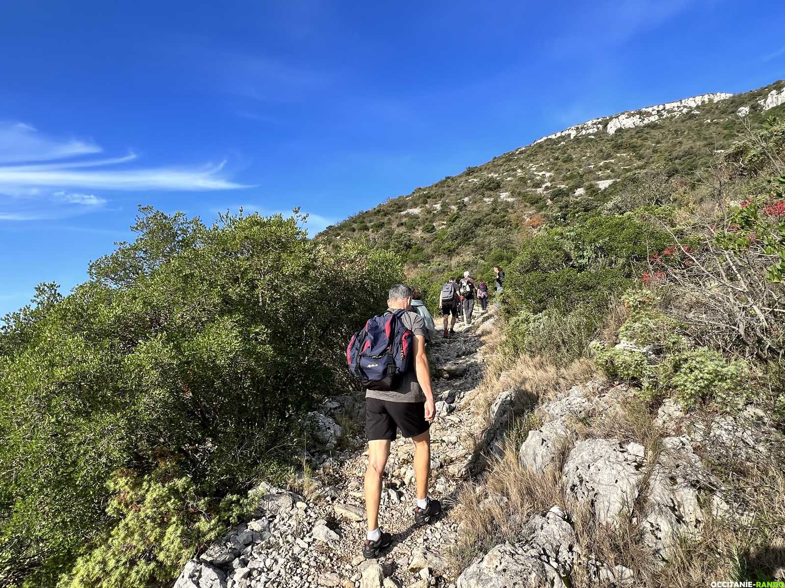 Une pause gouter avec de bons gâteaux et un petit café et thé nous fait du bien et nous sommes prêts à y retourner pour descendre par le sentier pierreux qui nous ramène à la Font du Griffe pour pique-niquer tranquillement au soleil.