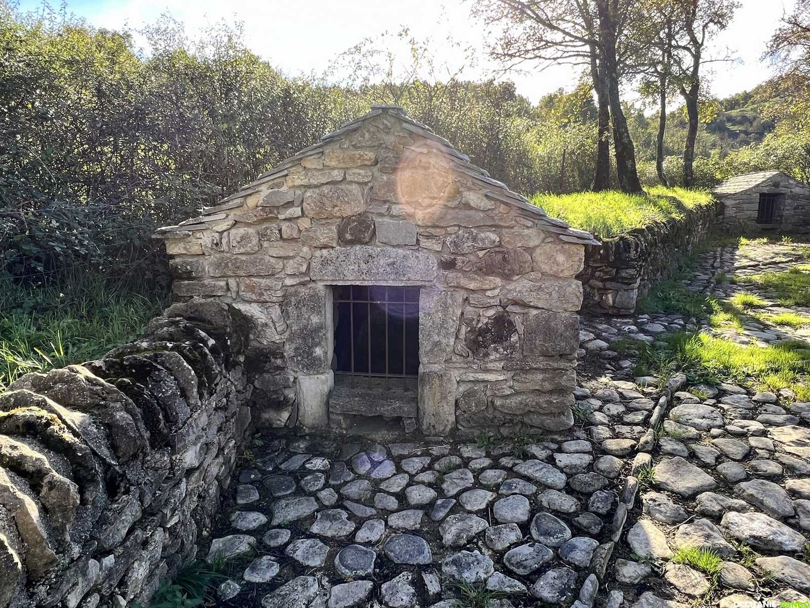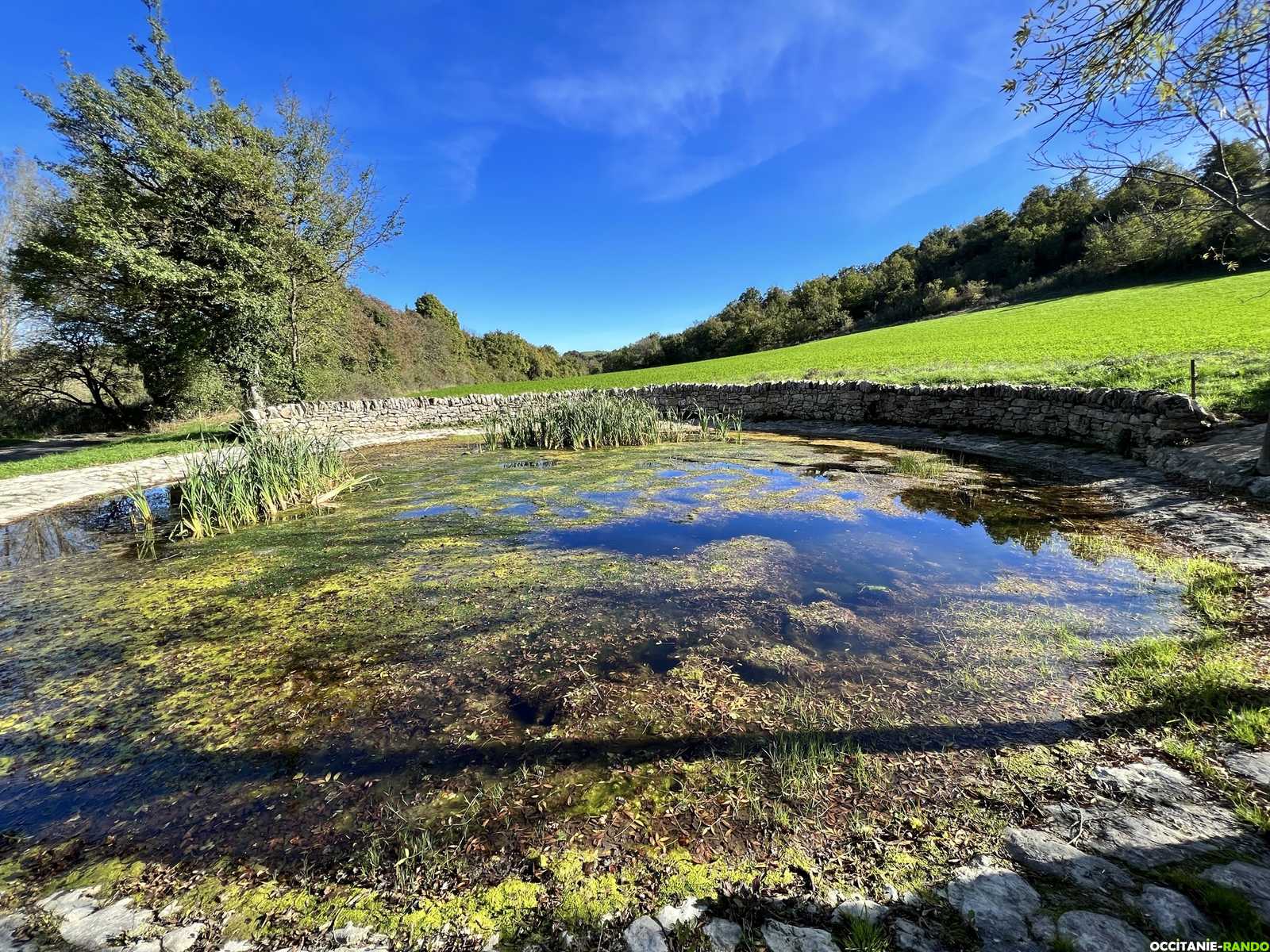 Nous reprenons notre route en direction de Saint-Félix-de-l'Héras et visitons les 2 gloriettes en pierres qui permettent de stocker l'eau des sources qui alimentent l'immense lavogne du village.