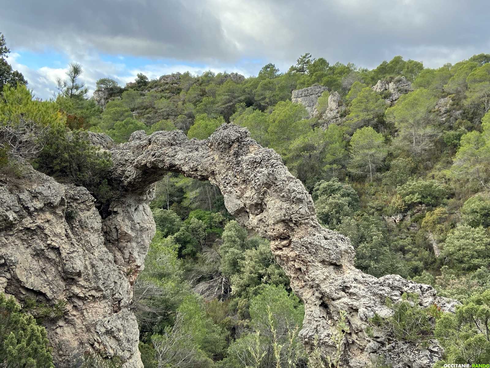 Bingo ! quelques mêtres après avoir emprunter un sentier non balisé, sur un piton rocheux, l'arche se dresse devant nous. Une belle descente technique plus tard nous voici au pied de l'arche.
