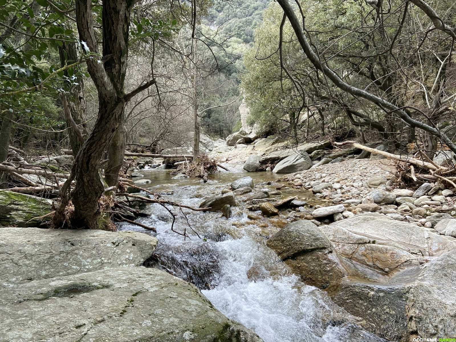 Nous retrouvons alors le GRP Tour de la montagne du Haut-Languedoc et atteignons le hameau de Cours-le-bas avant de traverser le Casselouve à nouveau à gué.