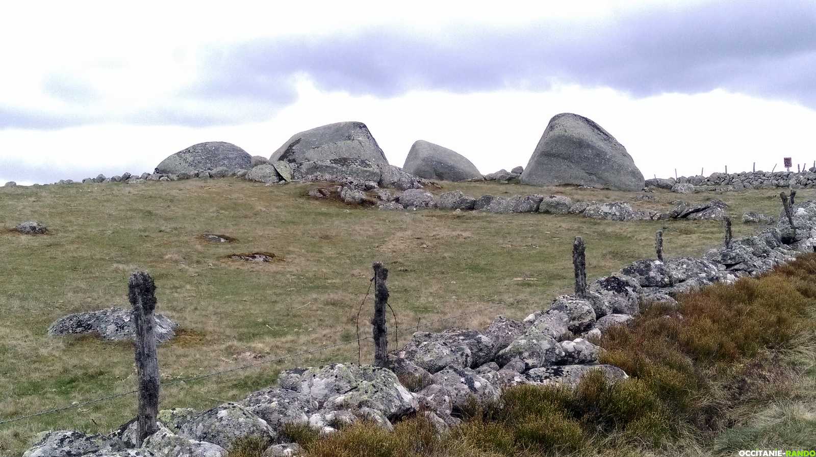 Changement de décor le lendemain avec une météo qui s'est considérablement dégradée car il pleut depuis le levée du jour. Départ à 6h30 et sans être échauffé, c'est un mur qui se dresse devant moi pour accéder au causse du Méjan. Rude démarrage que cette montée interminable. Arrivé sur le plateau le sentier me mène tranquillement à Meyrueis.
