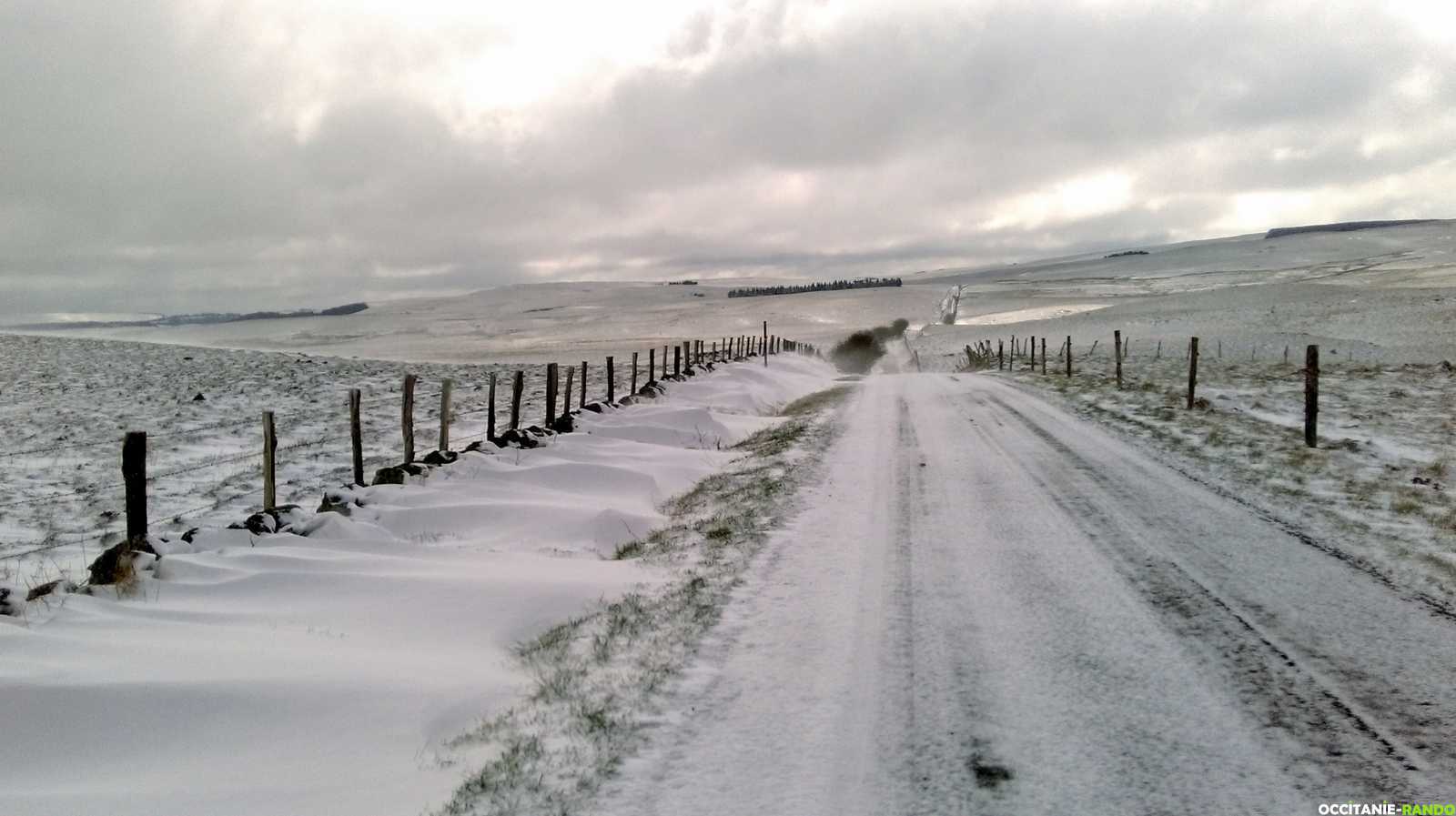 Un bon repas aligot saucisse et une nuit au gîte d'étape le Sorbier permet de bien démarrer la suite du périple. Changement radical de la météo ou une tempête de neige, de grosses rafales de vent et une température proche de zéro rendent l'étape très difficile. Heureusement, JB m'a accompagné toute la journée. Nous avons dû allonger la distance par manque d'hébergements. Le résultat est une étape de 42 km et près de 10 heures de marche dans des conditions délicates.