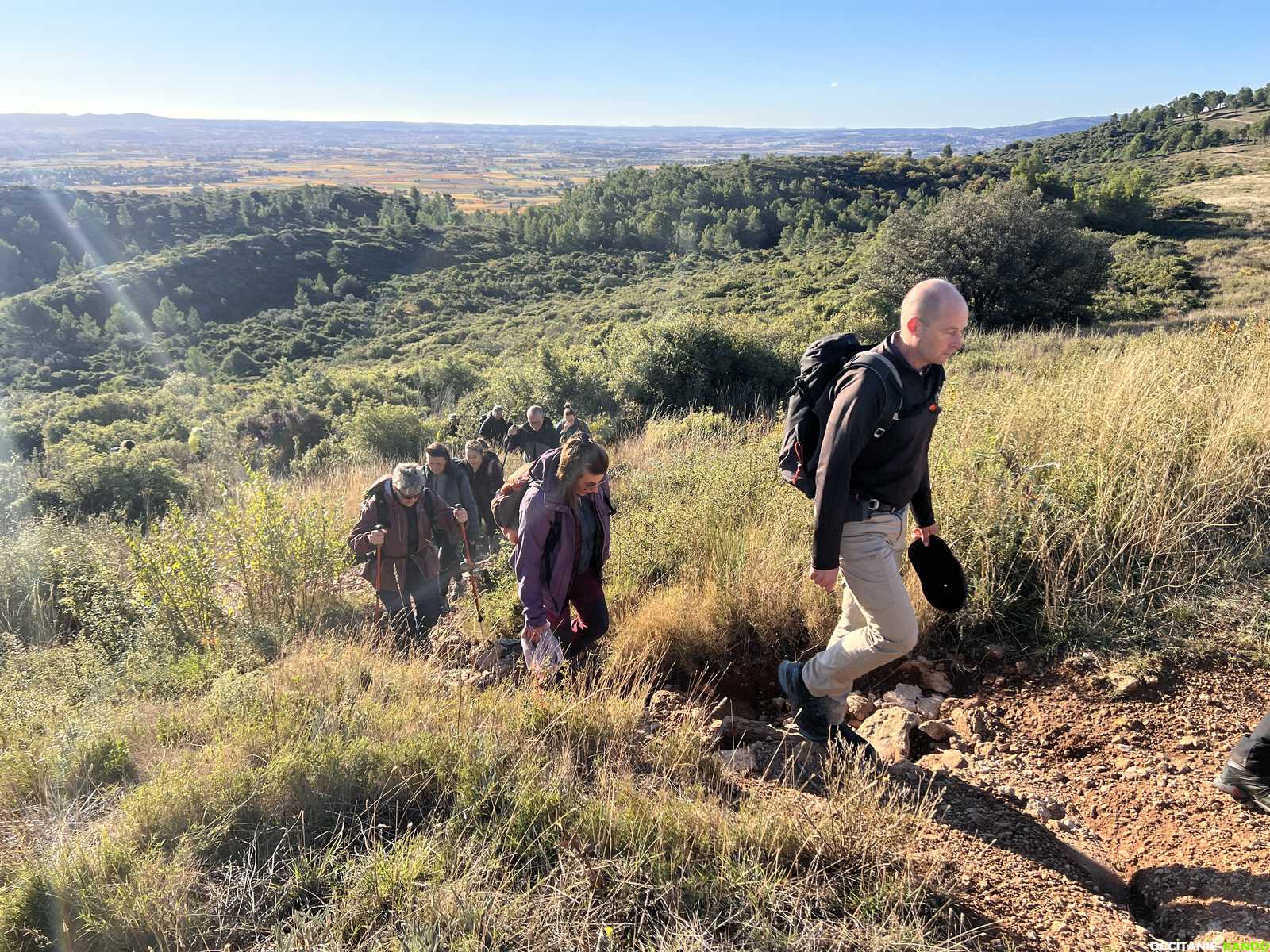 Arrivés au sommet, les randonneurs sont récompensés par une vue panoramique à 360° : le Caroux, la mer Méditerranée, Sète et les vignes du Languedoc se dévoilent sous un ciel parfaitement dégagé.