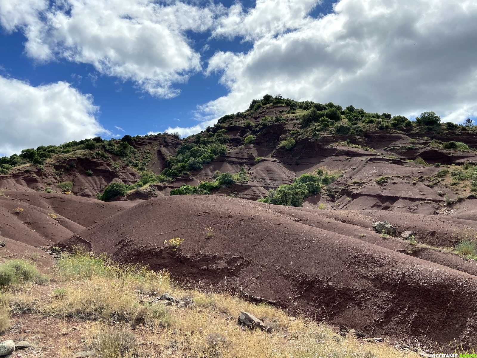 Bon à savoir : La ruffe (grès à grains de silice très fins entourés d’oxyde de fer) est issue de la sédimentation de boue (sable et argile). Cette dernière provient de l’usure, de l’érosion des massifs montagneux alentours (aux environs de 6 000 mètres d’altitude). La pluie a charrié ces boues qui se sont oxydées donnant la couleur rouge. Elles se sont déposées durant des millions d’années. Aujourd’hui, ces anciens massifs sont complètement érodés. Des torrents et des rivières ont transporté cette « ruffe ». Au pied de ce massif, un bassin a reçu les boues rouges qui se sont compactées. Au centre de celui-ci l’épaisseur de la ruffe rouge et grise est estimée à 2 500 mètres. Un enfoncement naturel lent et constant du fond de ce bassin explique le phénomène. La ruffe, recouverte par la mer de l’ère secondaire, a laissé les « calcaires » et les « dolomies » de nos paysages actuels. Au début de l’ère tertiaire, le bassin est une nouvelle fois soulevé et plissé, les Pyrénées se forment à ce moment-là (source : Office de tourisme du Clermontais).