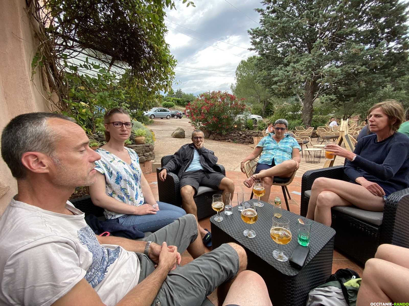 Nous nous installons rapidement en terrasse afin de profiter de la fin de l’après-midi et d’une bonne bière afin de se réhydrater. Nous soufflons tous et profitons des lieux et du paysage offert par le Mas de Riri. Magnifique.