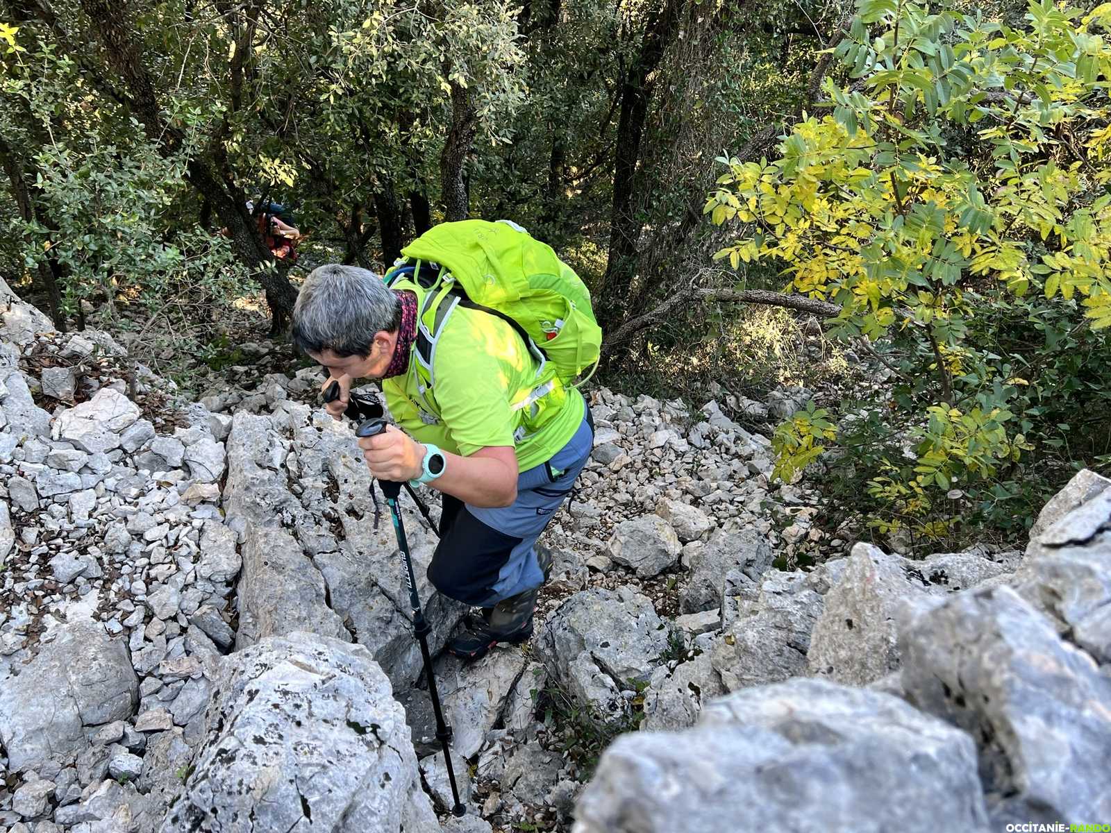 La pente est raide et bien caillouteuse mais ça grimpe tranquillement jusqu'à son sommet où nous profitons d'un spot ensoleillé pour nous poser et déguster quelques gourmandises préparées par les participants (bravo à tous !).