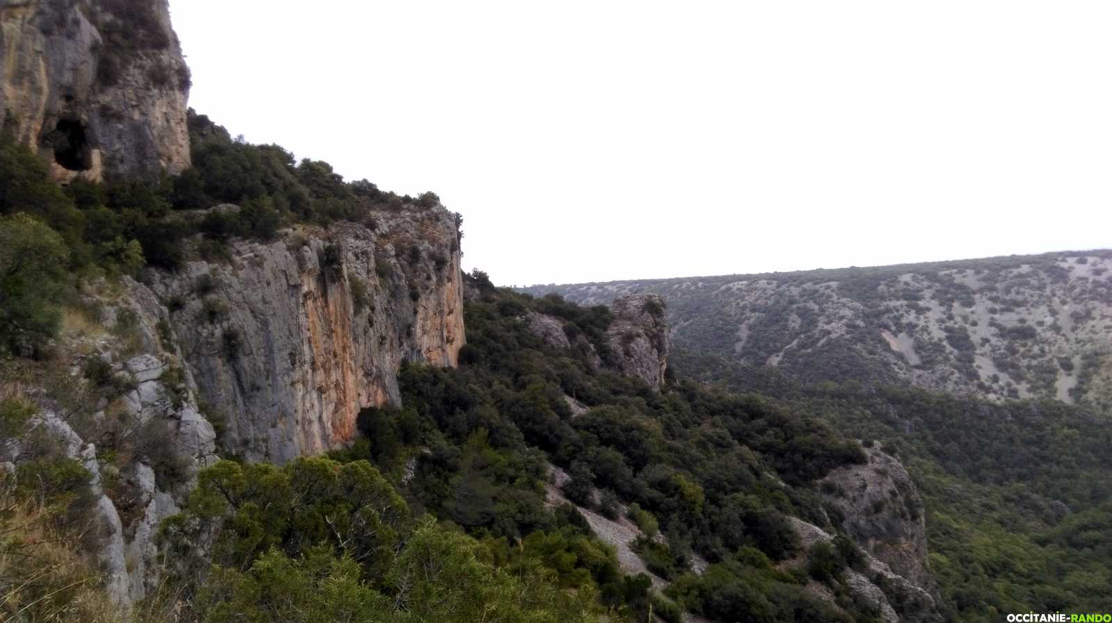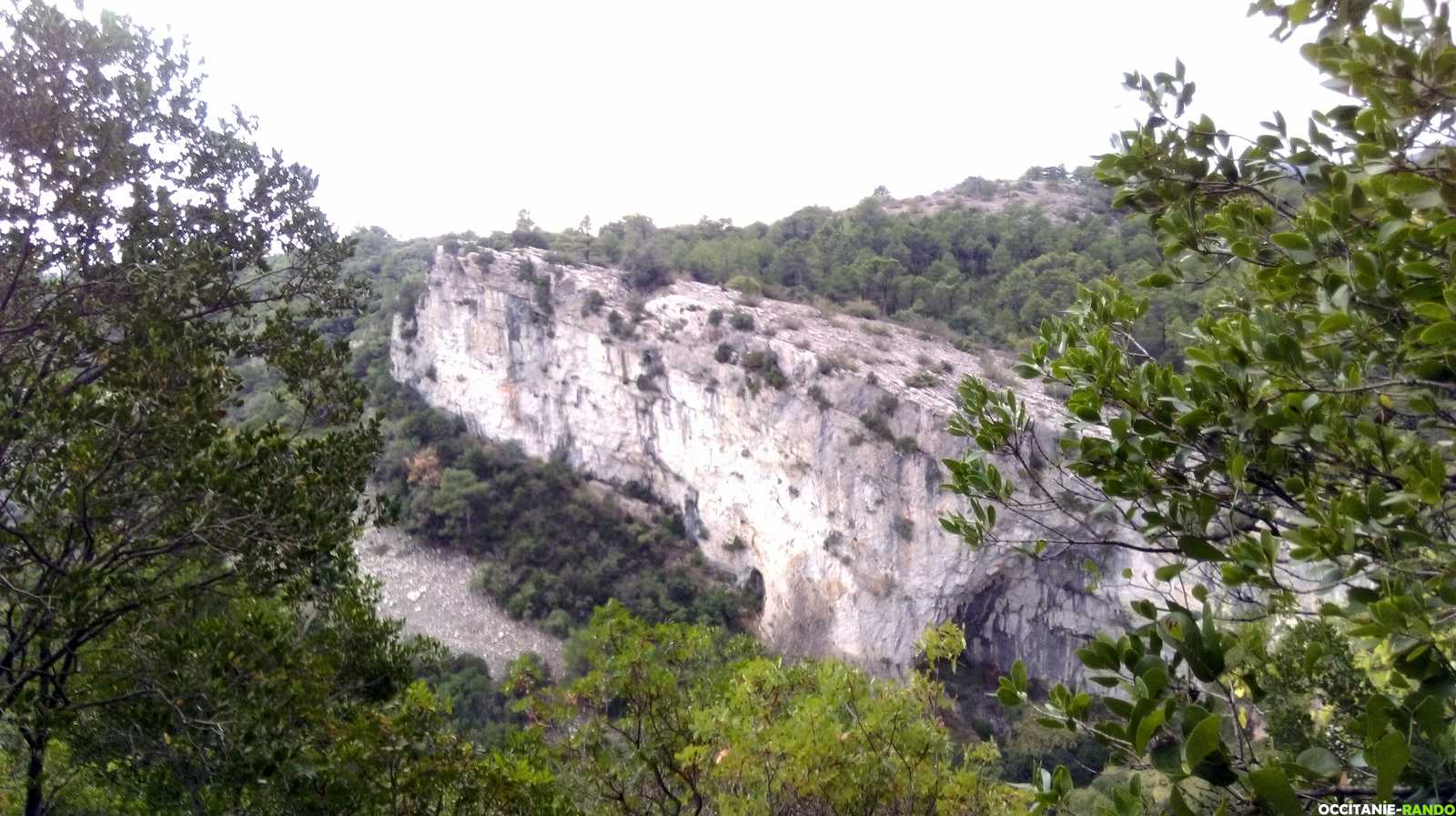 Nous descendons par le GR® qui mène à Saint-Guilhem-le-Désert et nous changeons de direction afin d'emprunter la sente qui mène à la baume de l'Olivier et au refuge où vivait il n'y a pas si longtemps Michel DOSS plus connu sous le surnom de "Frigoule" (un bel article à son sujet : Frigoule, l'ermite de la baume de l'olivier).
