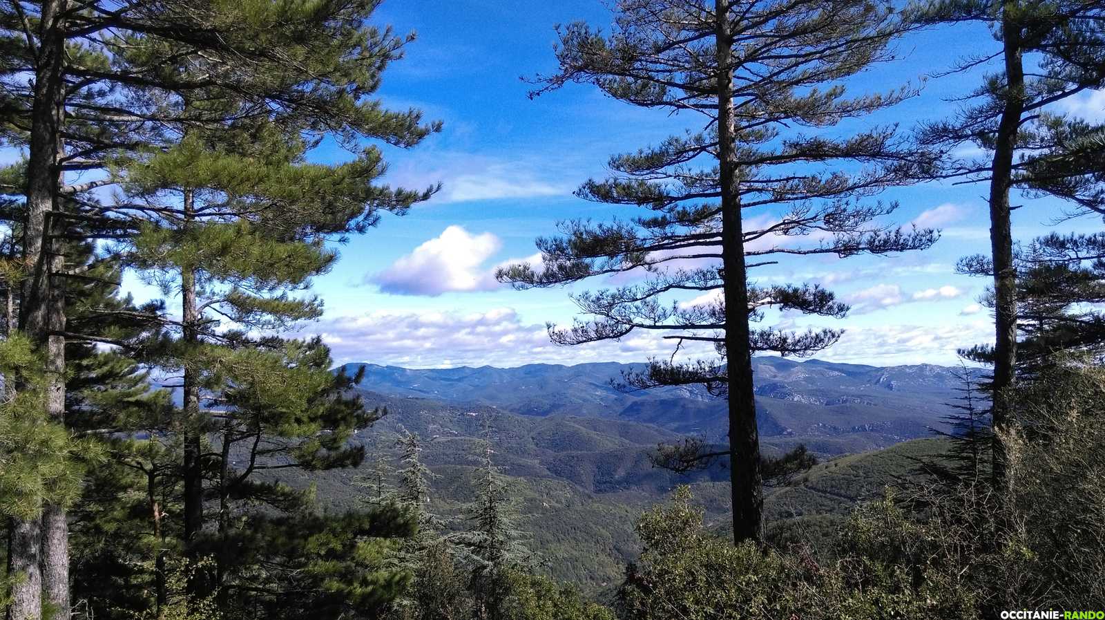 Nous passons le roc Peyras et nous sillonnons à travers la forêt sur une sente pas très large et assez technique mais offrant de très beaux paysages.
