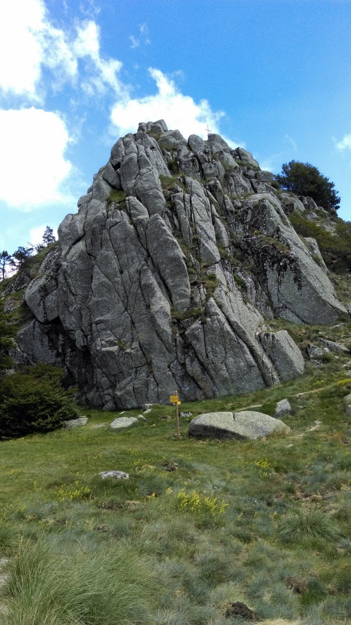 Petite pause déjeuner près de l'observatoire avant de rejoindre rocher de Saint-Guiral (1366 m d'altitude) qui est un lieu de pélerinage où une messe était célébrée sur des autels de granit pour préserver les troupeaux des maladies.