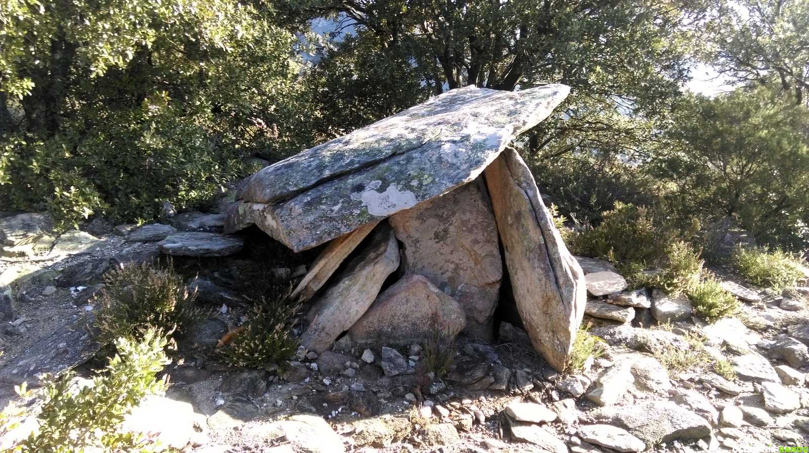 Nous quittons ensuite le PR pour prendre un ancien sentier sur la gauche à travers une forêt de chênes verts. Une belle montée bien raide d'un peu moins de 6km nous attend pour atteindre le col de la Buffe qui doit son nom aux vents violents qui y souffle (buffar = souffler en Occitant). A mi-chemin, nous passons à côté des deux plus importants dolmens sur les 5 présents.